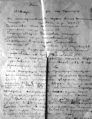 Сразу же после войны родственники обратились к властям за подтверждением или опровержением факта гибели Моисея Аврамовича. Заключение исполнительного комитета Кагановичского районного Совета депутатов трудящихся города Краснодара от 28 сентября 1945 года было неутешительным. Оно подтвердило гибель человека.)