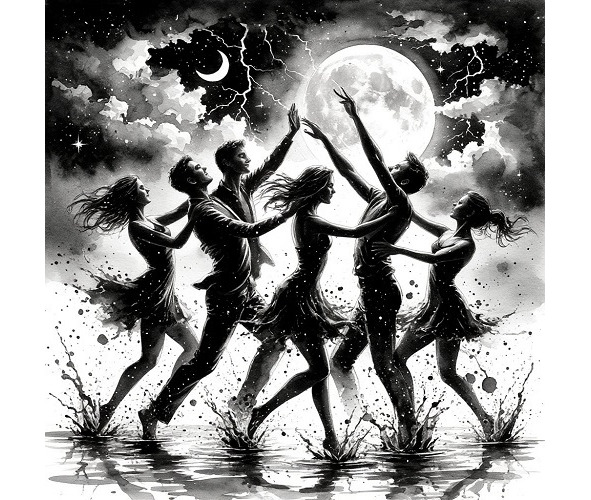 Искрящие, как молния,В нее же и влюбленные,Отдались танцу с пламенем,Навеки покоренныеСкитанием с небеснымиСверкающими танцами.Свое предназначениеБожественными краскамиВаяли, помня прошлоеСвое происхождение —Земли дитя дотошное,Принявшее сожжениеВ небесном свете молнии,Сиявшей ярче пламени,Танцующие помнили —Чернее ночи знамениОни давно бессмертные,Плывут, переливаются,Небесные наставникиЛишь с ними только знаются.А молния палитрамиОбнимет их горящими,И светом говорящимиСияющими титрамиИх дом насытит громами,Их дом звенящий радужный,Небесными законамиНаполненный, загаданныйНа праздник без усталости,На шествие мощнейшее,Ударами и звукамиНесущее скорейшееПрироды очищение,Чистейшее, звенящее,Обид развоплощениеИ свежесть настоящую.Светила им сопутствуют:Луна и Солнце шествуют,Сердца в синхронном таинствеПо небу путешествуют,Их встретив наполняешьсяТо страхом, то забвением,То громко восторгаешьсяСияющим мгновением.Вода на землю падает,Как будто в танце плавятсяТела их поднебесные,А может грохот палиц ихСтекает водным рокотомС воинственных танцующих,Кто знает смысл танца их?Ликующий? Воюющий?Кто знает назначениеБогов неуловимейших,Кто знает их движенияБожественную силищу?20.07.2024