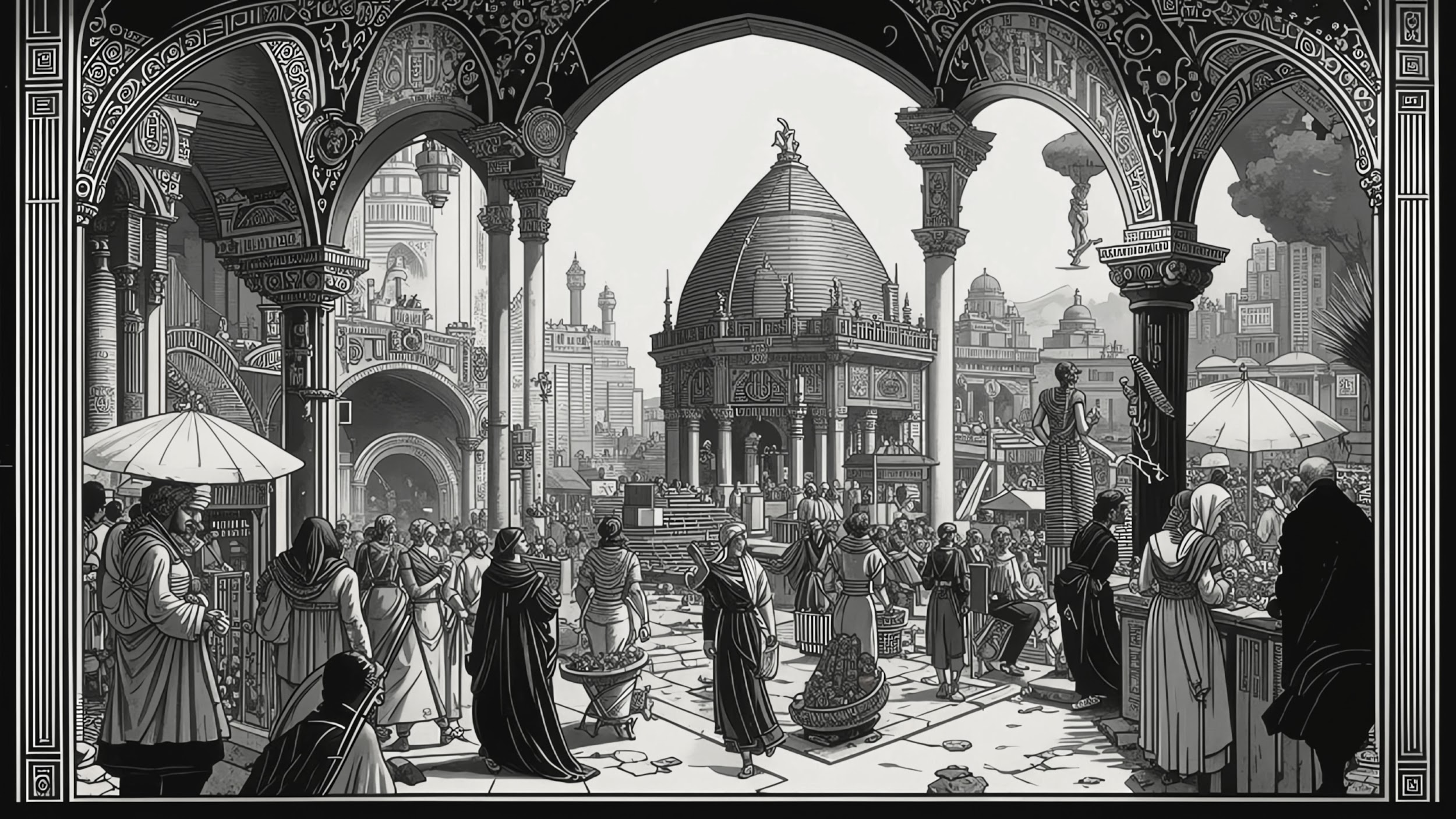 Трое друзей продолжали движение в сторону центральной площади, где располагался храм. Его величественные колонны, украшенные резьбой и росписью, производили впечатление, будто сами боги следят за теми, кто входит. В воздухе витал священный дух, и они ощутили, что это место пропитано не только историей, но и энергией молитв, гремящих из далёких времён.