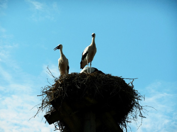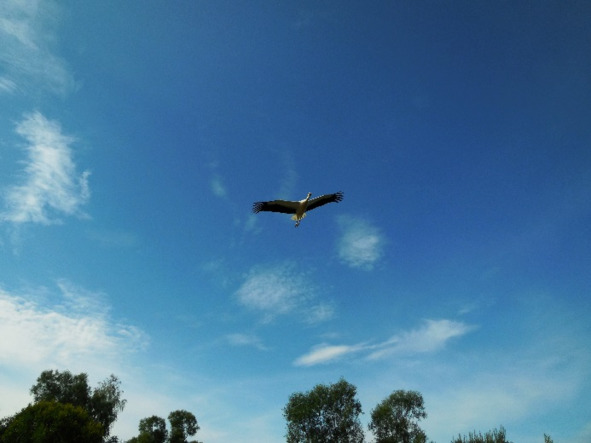 Аисты прекрасны и величественны. А когда они летят в воздухе – это очень зрелищно. Красные длинные лапы палочками назад, а с двух сторон от белого тела – два чёрных веера из крыльев.