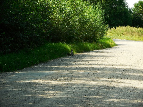 …Возле дороги сорвала два яблочка, предсказуемо кислых. Дорогу перебежала лиса! Настоящая, с белой кисточкой на хвосте! Сначала сидела у дороги, как столбик – я смотрю и не могу понять, кто: меньше средней собаки, но больше кошки! Подъезжаю ближе. И вдруг этот зверёк срывается и средней рысью бежит через дорогу – лиса! Ух ты!