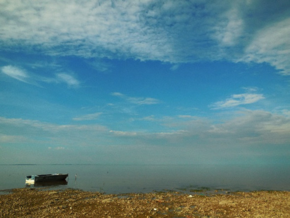Это было воссоединение с огромным озером, которое своей голубизной тон в тон сливалось с вечерним небом где-то посередине мутной туманной дымки, осевшей на горизонте.