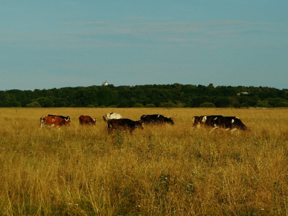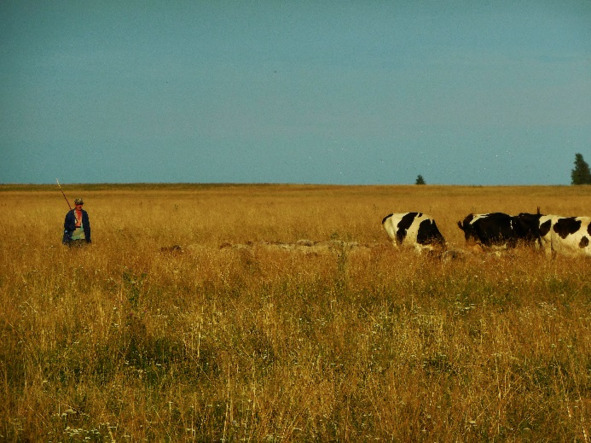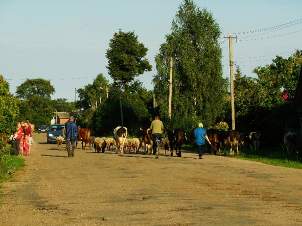 …В Коростыни я тихонечко ехала позади стада коров и овец, возвращающихся с поля. Эта близость коров, их запах и нелепость картинки, когда они огибают припаркованные у дороги иномарки; беззлобный мат пастухов; старушка, встретившая свою корову и пропускающая её к дому, – всё это составило такое умиротворяющее, самобытное, сакральное зрелище, освещаемое золотым светом медленно плывущего к горизонту вечернего солнца, что я поневоле залюбовалась.