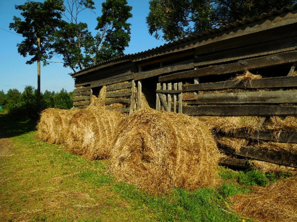 Ищу – отдельно нигде спуска нет. Пока искала – потеряла и этот спуск. За кипами сена, скрученными на краю деревни, переодеваюсь в купальник и еду спрашивать где спуск.