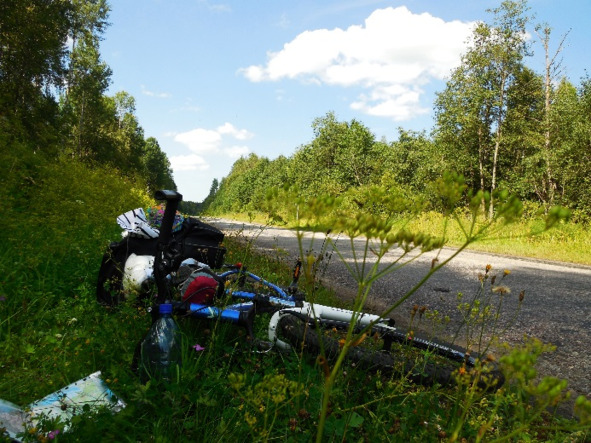 …Ночёвка в палатке хороша одним – невозможностью спать до обеда. От холода уже в восемь утра оказываешься на ногах, да и высыпаешься на свежем воздухе лучше и быстрее. Вот и сегодня я выспалась хорошо, только правая почка болит. С опухшей физиономией бодяжу подобие костра, чтобы вскипятить кружку оставшейся воды. Больше воды нет, поэтому надо собираться и ехать. Пью чай. Собираю палатку. Пакую вещи в велорюкзак. Привет, утро!