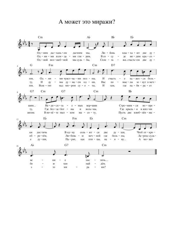Одним дыханьем дышим мы,Любовь вдыхают две души,Одними чувствами полны,И счастье кажется большим…Недосягаемых вершинСтремимся вопреки достичь,В одну сольются две души,Чтоб откровение постичь…Одними взглядами глядим,В сосуде видим красоту,И думы думаем одни,Нас помыслы зовут в мечту,Где беззаботны и вольны,Где крылья в жизни обретем,Любовью вечной где больны,Ларец с судьбою там найдем.Одной волшебной мы судьбы,Сплетаясь счастьем две души,Взлетят над миром суеты,И там, где набирает жизньВ полете пылком высоту,Пусть две влюбленные души,Парят, как птицы, наяву…А может это миражи?22 апреля 2019 год, Санкт-Петербург