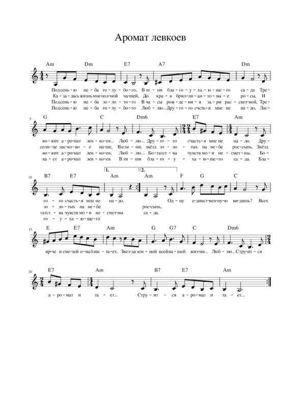 Под сенью неба голубого,В тиши благоухающего садаТревожит аромат левкоев…Люблю… Другого счастья мне не надо.Казалась жизнь мне полной чашей,До края бриллиантовые росы,И солнце ласковое наше,Взгляни, звёзд золотых на небе россыпь,Одну единственную видишь?Всех ярче и нежней она блистает,Звезда земной всей нашей жизни…Люблю… Струится аромат и тает…Под сенью неба золотогоВ часы рождения зари рассветной,Тревожит аромат левкоев,Люблю… Богатства чувств моих несметны.Под сенью неба голубогоЛюблю… Другого счастья мне не надо,Ласкает аромат левкоевВ тени благоухающего сада.27 Февраля 2017 год, Новосибирск