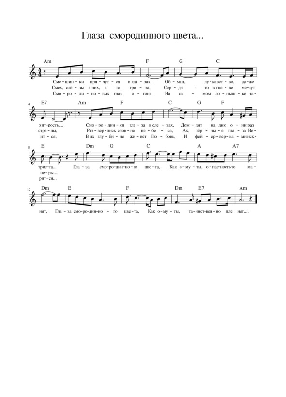 Смешинки прячутся в глазах,Обман, лукавство, даже хитрость…Смородинки-глаза в слезах,Дождят на дню они раз триста…Припев:Глаза смородинного цвета,Как омуты, опасностью манят,Глаза смородинного цвета,Конец ознакомительного фрагмента.
