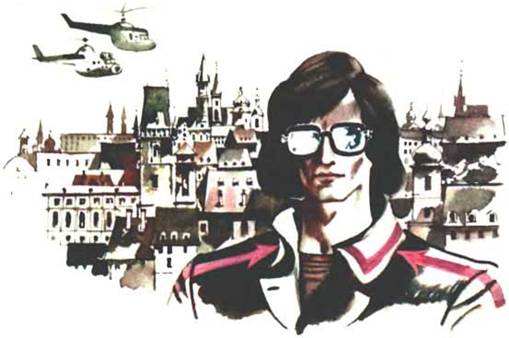На пороге фургона, разрисованного стреляющими надписями «АВТОРОДЕО» и «БОББИ МОЛНИЯ», появился высокий стройный человек в черном кожаном комбинезоне, плечи и рукава которого были украшены красными зигзагами молний. Человек, не торопясь, натянул тонкие кожаные перчатки, потом остановился. Его глаза были скрыты за большими зеркальными очками, так что невозможно было определить, куда он смотрит. Казалось, он к чему-то прислушивается. Сегодня его явно не занимал шум заводимых моторов, он напряженно вслушивался в тревожное жужжание вертолетов, с самого утра круживших над юго-западным районом города, над высотным зданием Академии наук. С утра оттуда доносились взрывы.