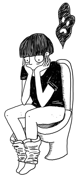 Мы часто говорим об испачканном во время месячных белье и не поддающихся стирке пятнах на джинсах, но мало кто обращает внимание на неприятности, связанные с посещением туалета. Кровь, смешанная с мочой, производит устрашающее впечатление, в первую очередь на неподготовленных персон: им кажется, что количество потерянной крови огромно, и они всерьез опасаются за свою жизнь. Особенно пугающим может выглядеть первое утреннее посещение туалета: после того как вы всю ночь провели в горизонтальном положении, а потом встали, скопившаяся кровь действительно устремляется наружу, и ее выходит довольно много.
