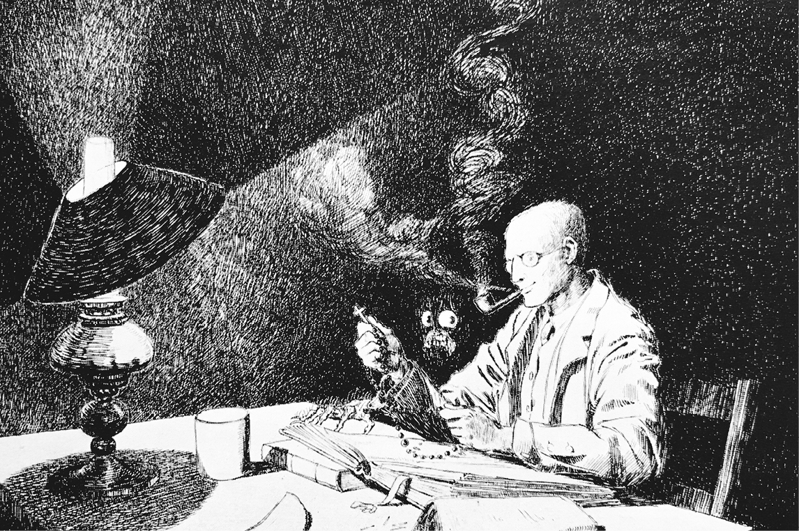 James’s sexuality has long been the subject of speculation – he was a lifelong bachelor, and surrounded himself with close, often younger, male friends. Those searching for Freudian clues about his personal life might point to the lack of female protagonists in his stories, or note that when women do appear they regularly take the role of the fiend, like Mrs Mothersole in ‘The Ash Tree’. The academic Darryl Jones refers to the ‘mouth, with teeth, and with hair about it’ inside which Mr Dunning in ‘Casting the Runes’ unsuspectingly places his hand, in the nook beneath his pillow, as a ‘vagina dentata – a nightmare image of the monstrous-feminine’. A similar horror could be ascribed to the mouldy well-cavity and the guardian-thing it harbours (‘more or less like leather, dampish it was’) in ‘The Treasure of Abbot Thomas’.