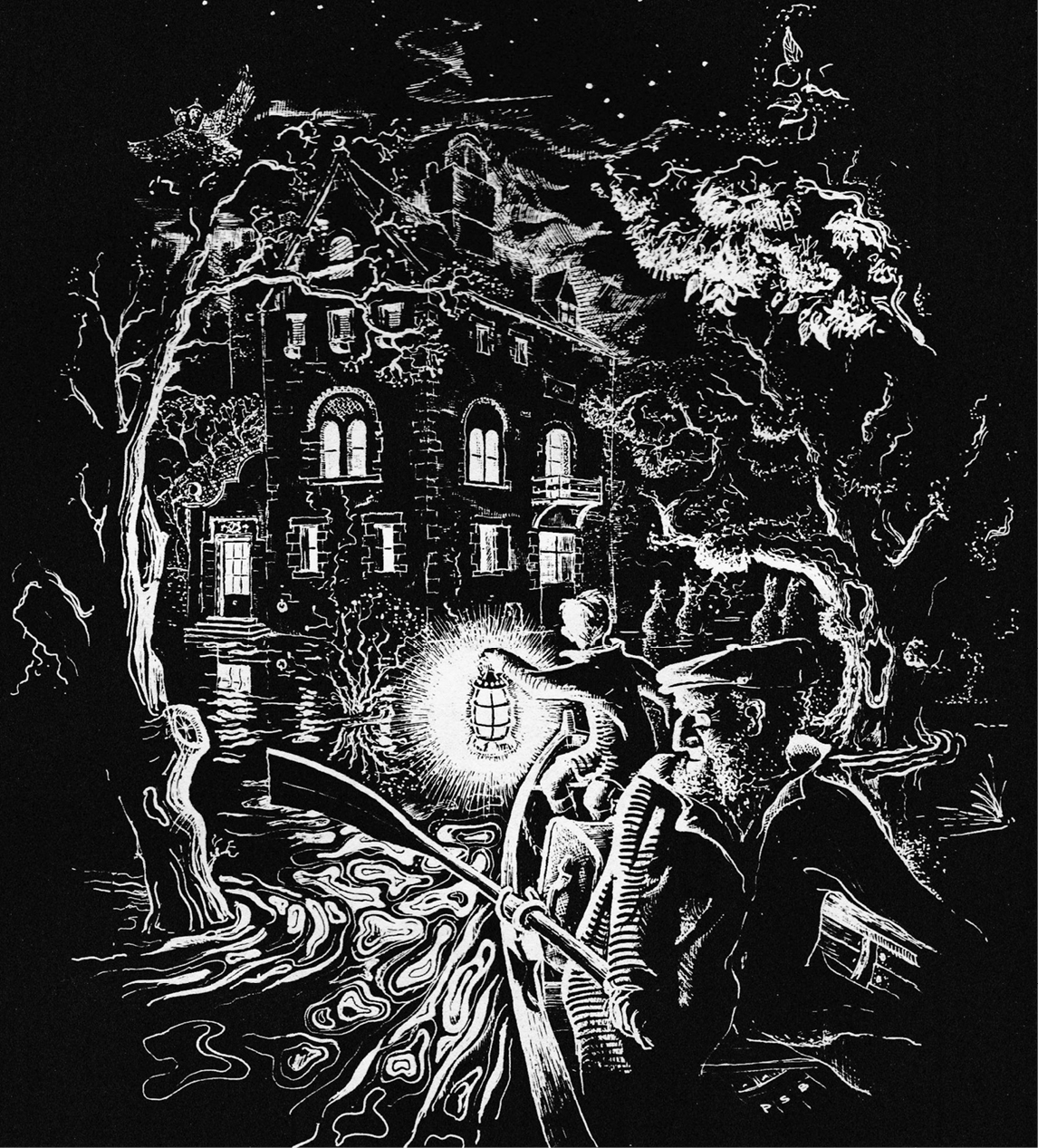 Illustration (‘Watery Arrival’) by Peter Boston from The Children of Green Knowe, reproduced here by kind permission of Diana Boston