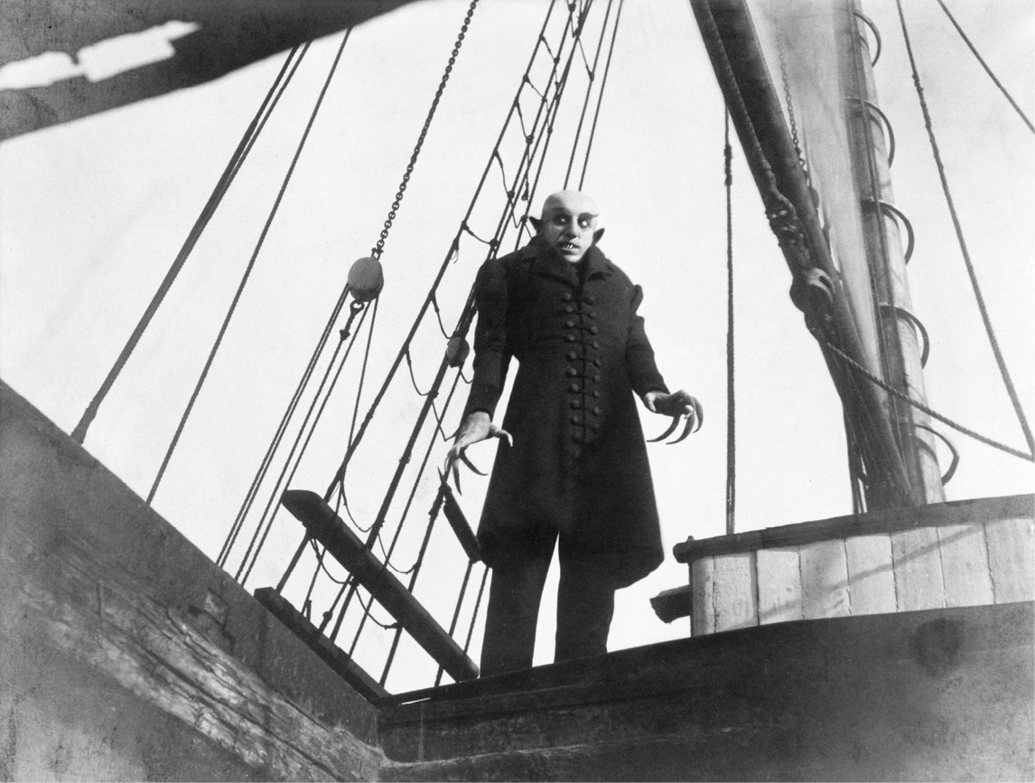 I disagree with James’s own lukewarm opinion of ‘Lost Hearts’. The story is viscerally effective in exploring the loss of childhood innocence (and of the boundaries people will cross to achieve their aims), though I think the adaptation I happened upon on that distant Christmas Eve is in some ways the more frightening of the two versions: certainly the gypsy girl Phoebe and the Italian boy Giovanni make petrifying on-screen apparitions with their greyish-blue skin, yellowed teeth, weirdly hypnotic swaying, and those extraordinary claw-like fingers. The maniacal movement of Mr Abney – he’s usually filmed with the camera tracking him, or circling Stephen in the way a big cat circles its prey – was inspired by Robert Wiener’s fêted work of German Expressionism, The Cabinet of Dr Caligari. And, in the appearance of the two ghost children, I see echoes of another silent German classic, F. W. Murnau’s Nosferatu, in which Max Schreck’s depiction of the spindly-fingered vampire, Count Orlok, remains one of the most iconic images of the supernatural committed to celluloid.