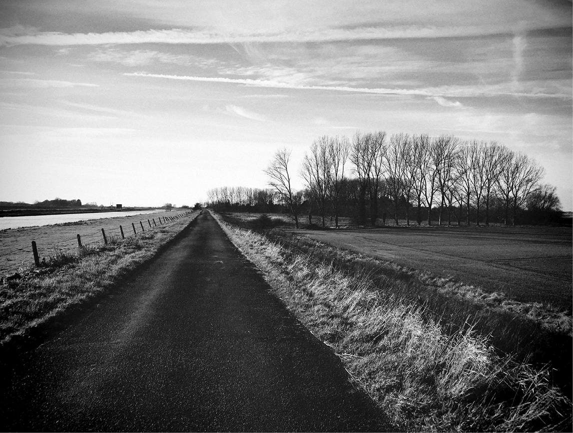 I stop in the heart of the nothingness, pulling onto the head of a dirt drove that branches off at a right angle to the main route’s undulating, cracked tarmac. It’s a bleak place, the very same stretch of road where, as teenagers, my friends and I would switch off our headlights while motoring at speed, briefly plunging ourselves into blindness. We were young and rash, fortunate not to suffer the classic Fenlander’s end and find ourselves drowning in two foolish feet of lonely water at the bottom of one of the ubiquitous steep-sided dykes that line those routes. A patch of ice at the wrong moment could have created a local tragedy and transformed us into a carload of ghouls.