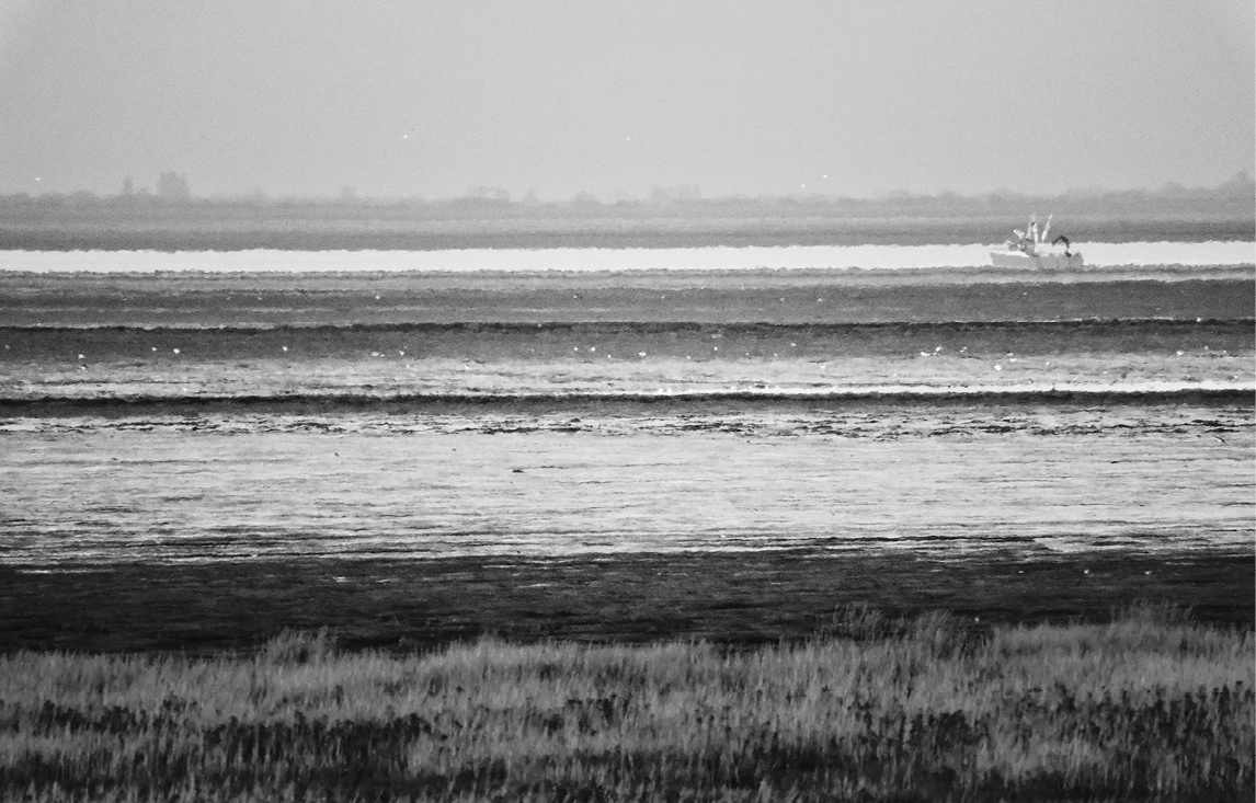 Out on the Wash a group of shrimp trawlers cluster together in what is left of the dying daylight.
