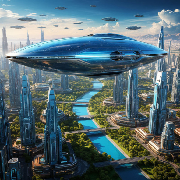 С этими мыслями, я, вместе с командиром и сослуживцами, направлялись, на выделенной для нас «воздушке», к Платформе, которая, вскоре, унесёт нас в тёмно-синюю высоту. Внизу были виды красивого, как бы раньше сказали, футуристического города, высокие здания которого переливались синим, голубым и золотым цветами. На больших крышах видны семейные пары с детьми, прогуливающиеся по, расположенным там, паркам и скверам со множеством разнообразной зелени.