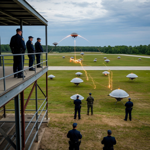 Они терпеливо наблюдали, как мы с командой монтировали «глушилки» на различные типы поверхностей, вокруг условно объекта защиты. Вскоре я дал рукой знак, что мы готовы, и мы тоже отошли к трибунам, чтобы увидеть всё действо.