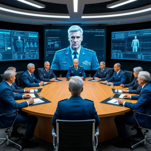 Выше на трибуне стояли сам глава Штаба Стивен Хаккет, ректор нашего НИИ Денис Борисович, и ещё несколько молодых офицеров, в глазах и на лицах которых читался уже солидный боевой опыт.