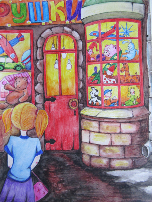 Проходя по Центральной улице, девочка останавливалась у витрины магазина с игрушками. Её взгляд упал на розовый кукольный домик с белым балконом, где на диванчике сидели две маленькие хорошенькие куколки. О таком домике девочка давно мечтала, и поэтому Катя глубоко вздохнула.