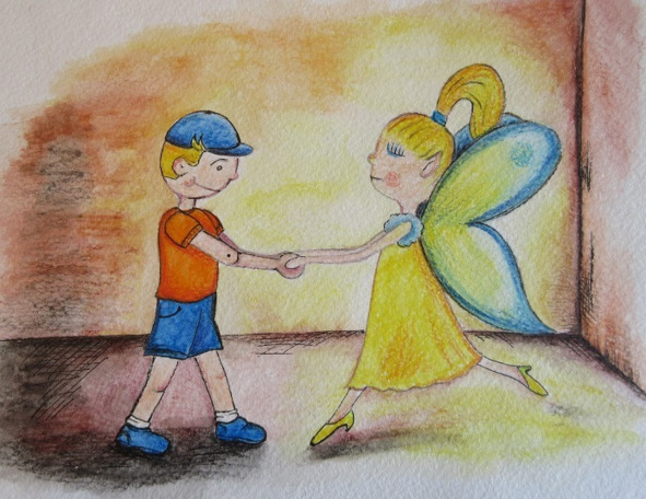 Теперь показалось, что это вовсе не звёздочка, а маленький человечек. Вилл подошёл поближе и действительно увидел хорошенькую девочку с двумя маленькими прозрачными крылышками. Свет, как будто исходил от её кожи и окутывал её полностью. На ней было жёлтое воздушное платье и прекрасные прозрачные туфельки. Волосы на голове были собраны в хвостик и стянуты золотой верёвочкой.