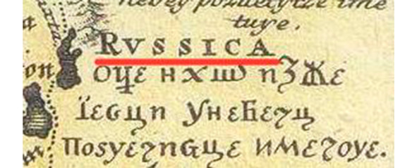 На территории России (Rvssica) написан текст: «Отче наш иже еси на небеси, да святится имя твоё.» (Рис. 12)