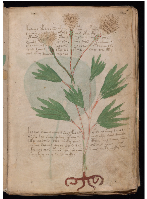Рис.2 Страница из Манускрипта Войнича. Библиотека редких книг и рукописей Бейнеке. Йельский университет.