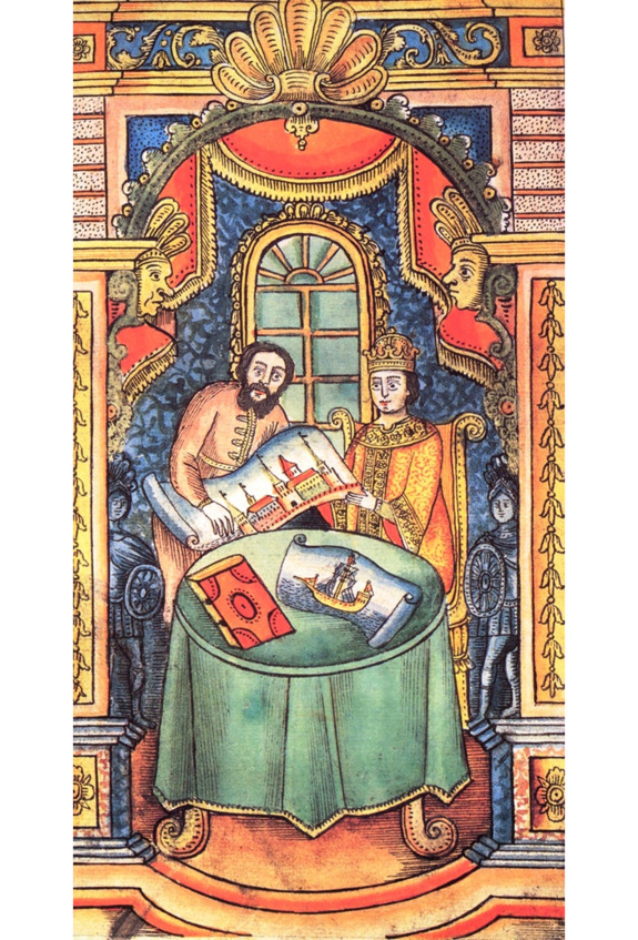 Рис.45 «Никита Зотов обучает Петра Великого». Это схематическое изображение царя, им может быть любой царь, в зависимости от надписи. {12}