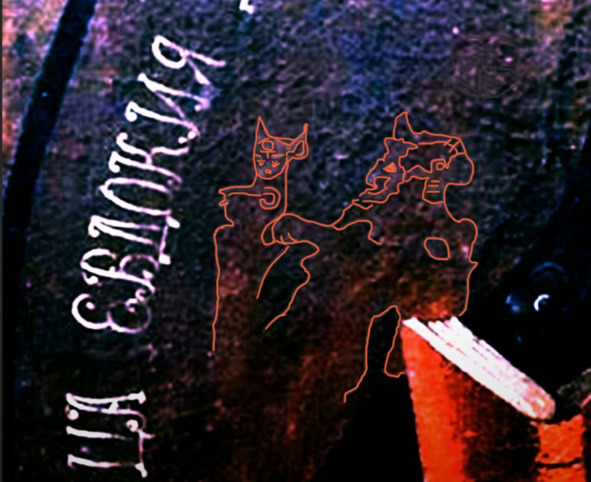 За Евдокией стоит кошка, похожая на египетскую, за хвост этой кошки держит какое-то чудовище (рис.58). Оказывается, в Египте есть коптская православная церковь, которая основана в I веке нашей эры. У коптов есть даже свой коптский язык, смесь греческого с египетским, поэтому, тексты можно читать на русском.