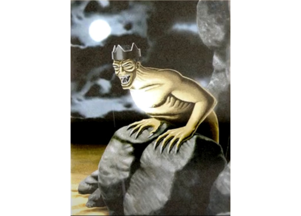 При детальном увеличении видим решётку, слева от Алексея, за которой сидит пленённый монстр в человеческом обличии и короне (рис.65). Скорее всего – это Кавчо – человекообразное существо со светом из груди (рис.66).