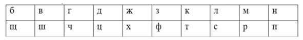 Литорея (от littera) тайнописание, род шифрованного письма, употреблявшегося в древнерусской рукописной литературе. Известна Л. двух родов: простая и мудрая. Простая, иначе называемая тарабарской грамотой, заключается в следующем. Поставив согласные буквы в два ряда, в порядке – Таблицы 2.