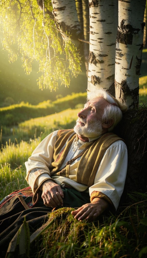 Медленно спускался он по тропинке, и с каждым шагом старость накладывала свой отпечаток. Молодое тело быстро старилось под тяжестью прожитых лет. У подножия холма присел он у старой берёзы, глядя на последний в своей жизни закат. С сожалением, сквозь слёзы, смотрела Белянка ему вслед, прислонившись к белой берёзке, словно ища у неё утешения. Солнце медленно угасало за лесом, и веки Егора медленно смыкались, погружая его в вечный сон. Как только последний луч коснулся горизонта, веки его сомкнулись навсегда. Умер от тоски по дому наш Егор, так и не увидев больше родных.