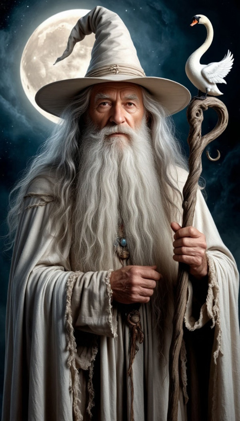 На следующий день гномы показали один из осколков лунного камня Белому Йёутсену, прославленному магу Гипербореи, чьё имя в переводе на наш язык означало «Белый Лебедь». Сколько лет он прожил на свете, никто не ведал. Высокий старик с длинными, ниспадающими по плечам серебристыми волосами, укрытыми широкополой шляпой цвета слоновой кости с заострённой тульей, и с такой же волнистой белоснежной бородой, он являл собой воплощение мудрости и силы. На нём был длинный, струящийся до самой земли плащ, сотканный, казалось, из лунного света, а в руке покоился витой посох из слоновой кости мамонта, увенчанный изящной фигуркой белого лебедя с распахнутыми крыльями. Великий чародей, постигший сокровенные тайны Гипербореи и мироздания, мог заглядывать в прошлое и будущее, исцелять недуги и, поговаривали, даже обращаться в зверей и птиц, хотя никто тому не был свидетелем.