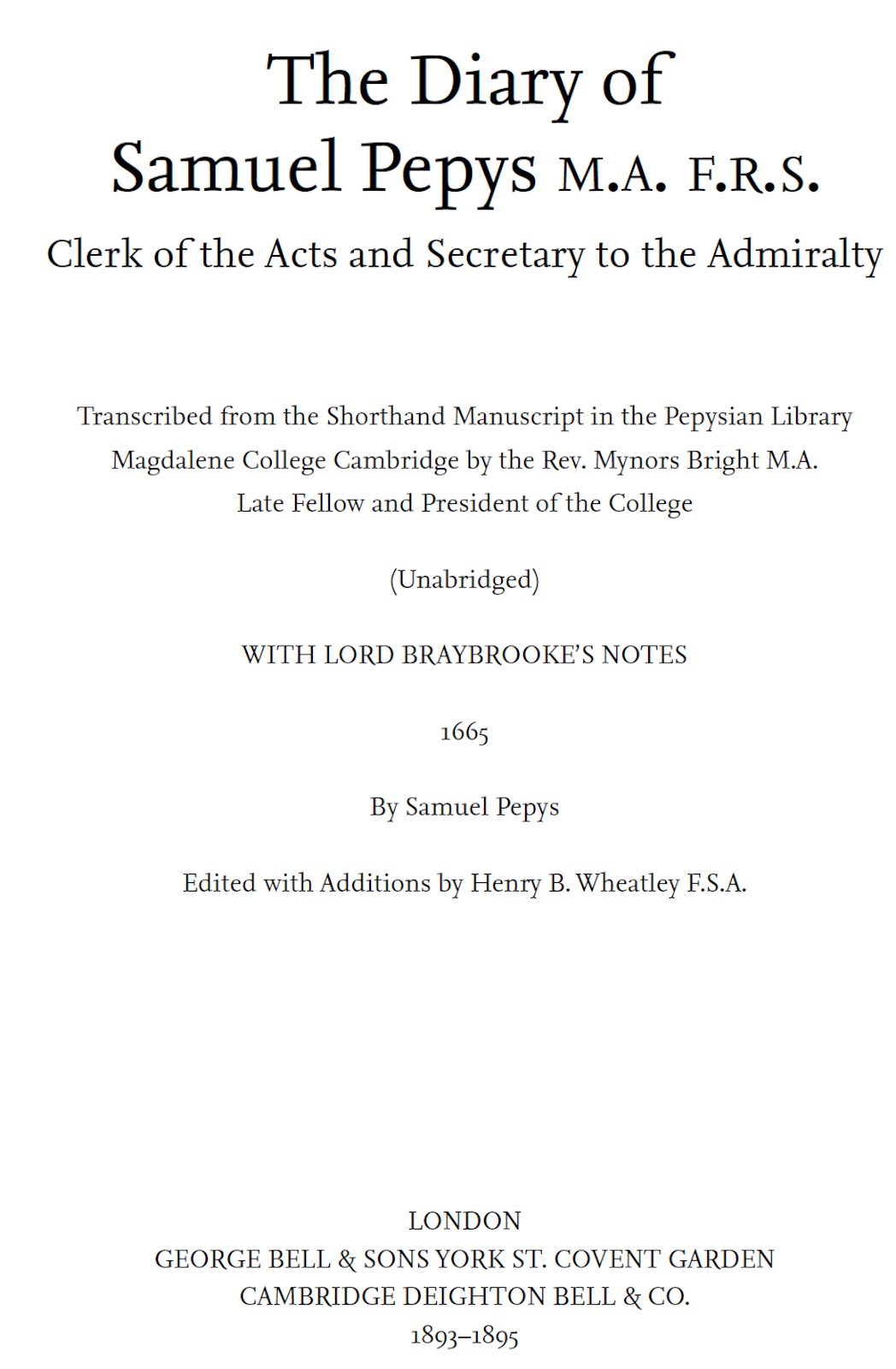 Text from The Diary of Samuel Pepys by Samuel Pepys,