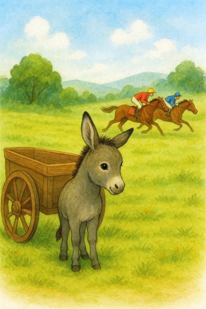 Так и случилось. Никто не предъявил своих прав на красивую лошадь серой масти, и ее стали тренировать. Тренироваться было не так уж легко, но ослик решил потерпеть и дождаться соревнований.