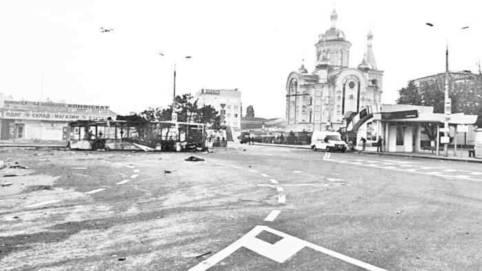 Свято-Преображенский собор Донецка. Город после очередного украинского артобстрела