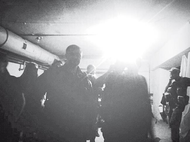 В подвале бомбоубежища. Облгосадминистрация Донецка. 10 июня 2014 года
