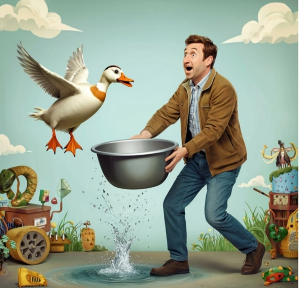 Когда в понедельник все собрались в офисе, то только и было разговоров про этот удивительный трофей, собственноручно добытый лично шефом. Петрович заметно, сантиметров на десять стал выше ростом, а плечи от величия раздались настолько в ширь, что не проходили в дверной проём в его кабинете и пришлось срочно менять на более проходимый, иначе он начинал застревать в нём. История, с каждым чаепитием обрастала всё новыми и новыми подробностями охоты тазом на утку и к вечеру оказалось, что он специально не взял ружьё, а прихватил в экспедицию медный таз! А в следующий раз вообще пообещал поехать даже без таза, с голыми руками. И показал, как он будет душить пойманных с двух рук уток!