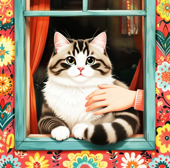 – Всё осталось в далёкомпрошлом…Лишь моё отражение встекле…Да любимой хозяйкиладошка,На пушистой и сытойспине…Иллюстрацию к этому произведению создал ИИ чат GigaChat.