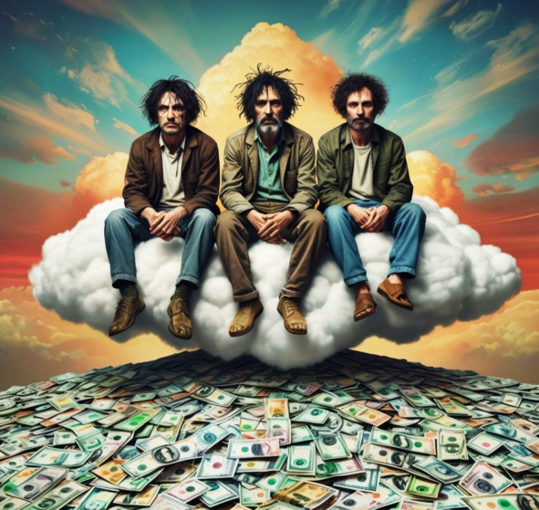 Ни жизни нет, ни денег, ни ума, ни славы,Кровавым обернулся дождь из денежной халявы!Иллюстрация создана ИИ чатом GigaChat специально для этого произведения.
