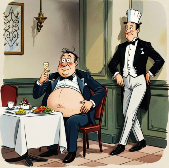 Решил вчера отужинатьв Париже!Признаюсь, грешен я,люблю пожрать!Париж Нью-Йорка оказалсяпросто ближе,А я не очень-толюблю летать.Я заказал омаров,профитроли,Сухое «Божоле» ибланманже.Ещё, цыпленкана второе,И устриц,на второе-же…Немного разморило отсухого,Мелькнула даже мысль отет-а-тет…И вдруг в меню родное вижуслово,Исконно русское, из детства,винегрет!Вдали от родинылюбимой,Я испытал патриотизмазуд,Позвал официантапантомимой,И приказал, пусть блюдопринесут!Слюна текла и капалана брюки,Садилось солнце где-тоза «Берси»,Я нервно изломал себе всеруки,Пока мне эту… дрянь…не принесли!Так испохабить русскуюсвятыню!Так надругаться, даже я-бне смог!Кто надоумил лОжить вместосвеклы – дыню?!!Я чуть от смеха не порвалживот!Плешивый галл за столикомсоседним,По виду – полныйимбицил,Решил, что я от винегретасбрендил,И у виска ручонкойпокрутил.Им, из-за лап калечащимлягушек,Здоровью земноводных наносянепоправимый вред,Во веке не проникнутьрусским в душу,И винегрета не раскрытьсекрет!Живущим в мире чистогана инавара,И не носившим никогдалаптей,Им не понять чаи усамовара!Всю прелесть кислых жирныхщей!К тому-же, организм,привыкший к водке,Решил вернуть ихжидкое винцо,И я в клозет рванулнетрезвою походкой,Попутно повару взглянувв лицо.Лицо сияло, как витринаювелира!Наверно, всю мою свеклусожрал?!!Кровь в кулачищах заигралас новой силой,И я французу…кукиш… показал!Сияла Эйфелева башня,словно ёлка!И так-же ярко мой светилфингал!Сегодня буду ужинать вНью-Йорке,Я даже самолёт боятьсяперестал!
