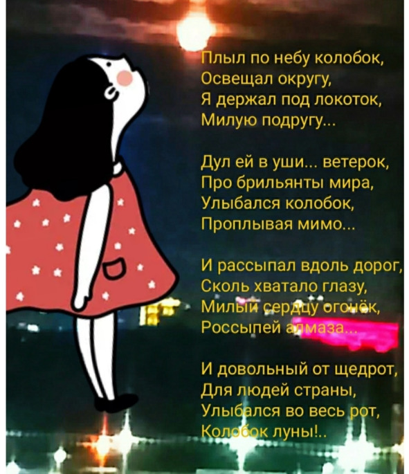 Пусть носок твой дыряв и…Залатан…И ботинок давно без…Шнурка…Слаще мёда, дороже, чем…Злато…Твоих мыслей земных…Красота…Кактус милый, колючий…Любовник…Расцветёшься стихами…Опять…Сяду рядышком на…Подоконник…И скупыми слезами начну…Поливать…Сяду рядышком на…