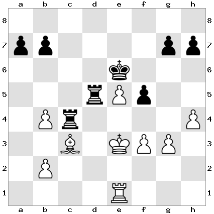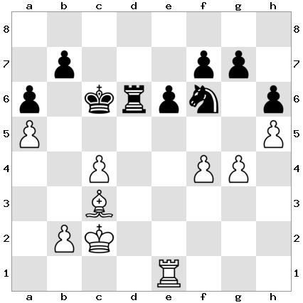 Неверно рассчитав варианты, в этой позиции черные признали себя побежденными (1…a4? 2. ba c4 3. b3! и белые выигрывают), хотя при правильной игре выигрыш был бы на их стороне.