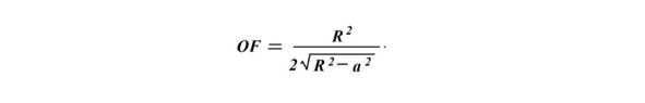 Эта формула и ее вывод приведены в описании патента RU 2533058 (Комраков, 2012). Максимальное расстояние а для Долголетрона ЕКОМ составляет 1500 мм, а для Биотрона Цзяна 800 мм (половина длины стенда с растениями). Расчетная длина фокальной линии от точки R/2 до точки F будет для Долголетрона EKOM 16 см, а для Биотрона Цзян 13 см.