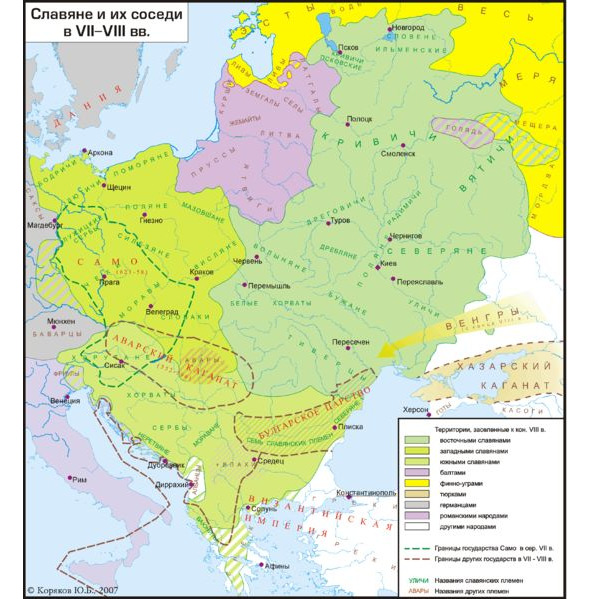 Карта расселения основных славянских племен (по Корякову Ю. Б.),