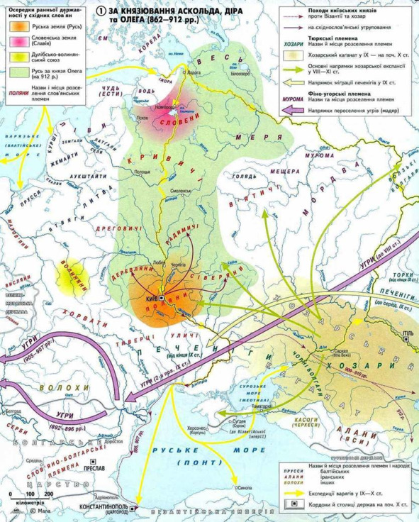 Составившие эту карту украинские историки полагают, что племя «литва» жило на территории современной Беларуси в бассейне рек Неман и Вилия, а на территории современной Литвы жили аукштайты, жемайты и курши (http://ceae.ru/Belarus.htm Центр Экономического Анализа и Экспертизы ЦЭАиЭ http://ceae.ru/Belarus.htm). Заметим, что на территории современной России, за исключением ее западных областей, в то время жили не славянские, а финско-угорские и тюркские племена, которые составили основу современного русского народа.
