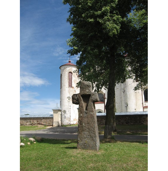 Известно, что первоначально на перекрёстке дорог села Камаи был установлен огромный, двухметровый валун. Из него не позднее XV века вытесали крест, который стоит напротив костёла и сейчас. Изъеденный временем, или покрытый непонятными надписями, этот крест является своего рода символом Камаев.