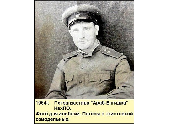 В сентябре 1933 года деда назначают начальником пограничной заставы «Араб-Енгиджа», а в июне 1936 года ему присваивают воинское звание «лейтенант». Из своей службы на заставе дед вспоминал один эпизод. Во время отпуска деда его обязанности исполнял помощник Громадский (или Громацкий). Громадский был старшиной заставы. Однажды ему доложили, что лошади через Аракс ушли в Иран. Он, как был в трусах, накинув через плечо клинок и одев зелёную фуражку, оседлал дедову лошадь, и поскакал на ту сторону через мост, мимо сопредельной стражи. На сопредельной стороне тоже, наверное, знали лошадь начальника заставы и его помощника, поэтому не предприняли никаких мер. А может, опешили от такой дерзости. Тем не менее, ушедшие кони были возвращены. Громадский получил сколько-то суток ареста, но всё обошлось. Хотя дед по возвращению ему говорил, что могли и посадить. На что тот отвечал «– Что так сидеть – за лошадьми не усмотрел, что эдак – за нарушение границы. А так хоть спокойней, что кони дома». К слову, конь начальника заставы был приметным. Эту кобылицу дед сам отбил от табуна и объездил. Светлой масти, по имени Жрица, она с седоком занимала призовые места в Нахичеванском отряде на скачках. После того, как дед два раза на ней выиграл окружные скачки, её забрали для племенного воспроизводства.