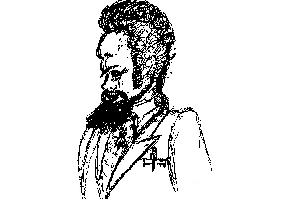 Замечательной растительностью, некоей даже шерстистостью одарила природа – черные кудри на вершине крепкой головы (более квадратной, нежели круглой), темноватые же баки, низвергающиеся по щекам до самых брыл, и – удивительная в своей контрастности – огненно-рыжая, прямо-таки красная борода лопатой, выдающая в мягком среднерусском человеке наличие резких кровей.