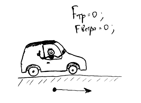 Рис.25. Если исключить все внешние воздействия, то едущая машина будет ехать вечно! И бензин бесплатно!