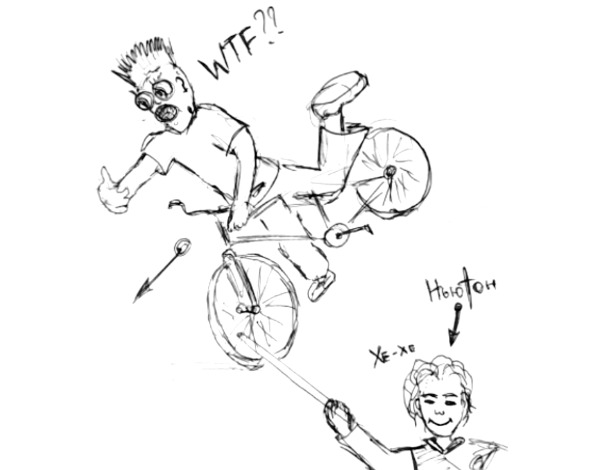 Рис.29. В общем-то, Ньютон виноват в падениях через руль!